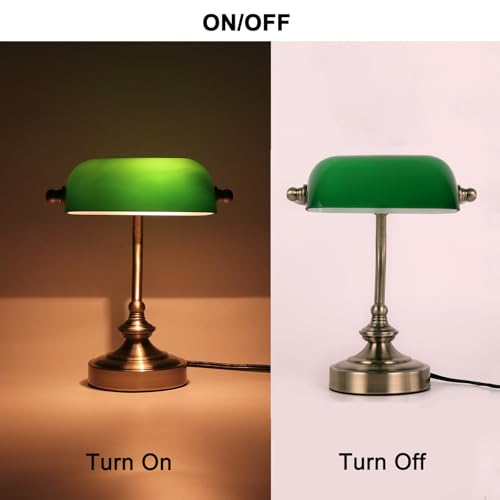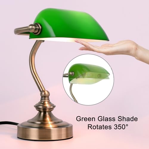 【Vintage & Timeless Design】Con pantalla retro verde hecha de vidrio verde transparente y acabado de latón satinado, esta lámpara banker combina perfectamente con cualquier decoración de la habitación de moderno a vintage. Adecuado para su lectura, un toque de glamour en casa, oficina, biblioteca, dormitorio, sala de estar, habitación de los niños, habitación de invitados.