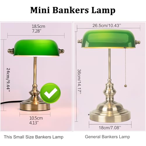 FIRVRE Lampara de Mesa Vintage Pequeña, Lampara de Estudio Escritorio con Interruptor de Botón, G9 Base, Lámpara Verde de Banquero para el Hogar Oficina Biblioteca