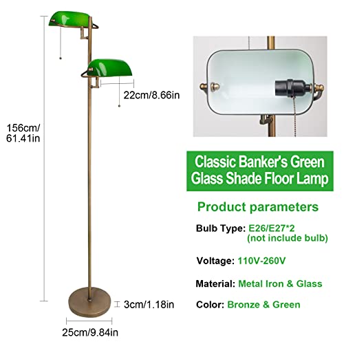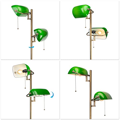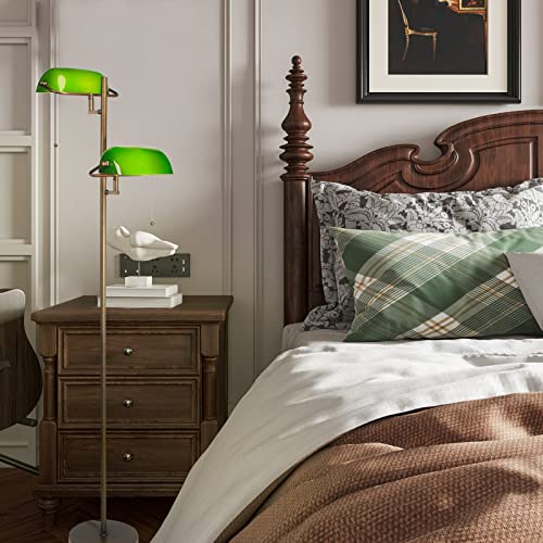 FIRVRE Lámpara de Pie de Vidrio Verde Banqueros Lámpara de pie con interruptor de Cadena y Brazo Oscilante de Metal Lámpara de Lectura Para Salón Habitación Oficina Estudio