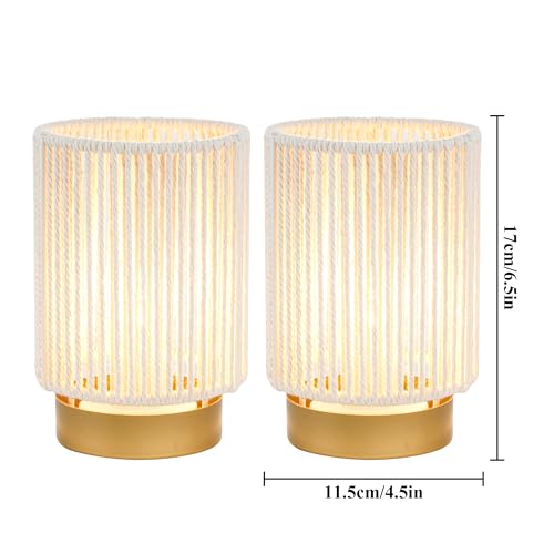 JHY DESIGN Set de 2 lámparas de mesa de cuerda de algodón trenzada, 17 cm de altura, lámpara a batería con temporizador de 6 horas, ideal para salón, dormitorio, bodas, fiestas