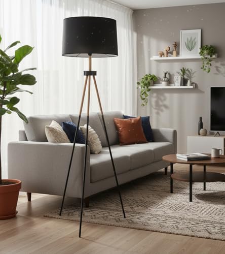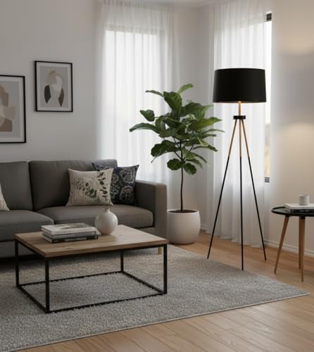 1BEL AIR HOME – Lámpara de Pie NAPOLI Trípode de 3 Patas, Altura 160 CM, Diseño Elegante y Moderno, Perfecta para Sala, Dormitorio, Oficina, 1xE-27 (BOMBILLA NO INCLUIDA) (NEGRO)