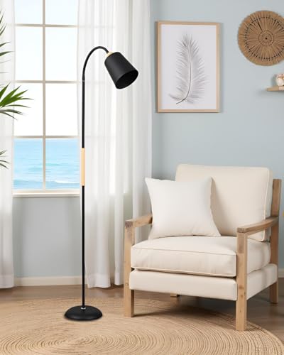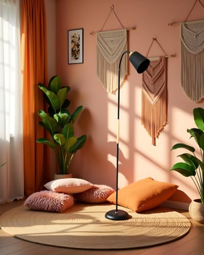 BEL AIR HOME – Lámpara de Pie SWEDEN | Estilo Nórdico con Detalles en Madera | Brazo Orientable para Lectura | Altura Ajustable 150 cm | Portalámparas E27 | Negro, Versátil