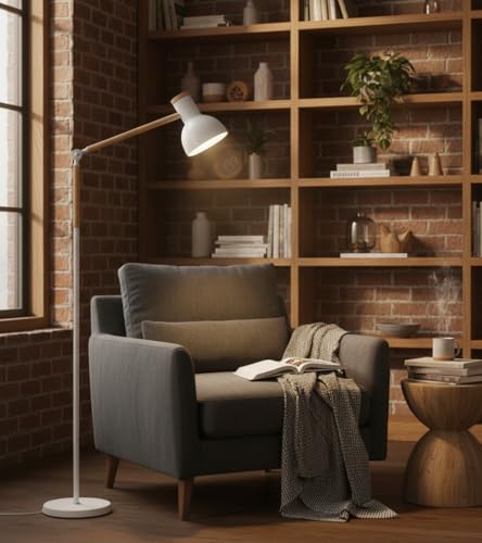 🌟 Ilumina con estilo: La lámpara de pie TEACHER combina metal y madera para aportar elegancia moderna a tu salón, comedor o habitación. Su altura de 155 cm y capacidad para ajustar la dirección de la luz la hacen perfecta para leer o crear ambientes acogedores