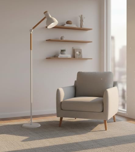 🛋️ Diseño que complementa tu espacio: Disponible en color blanco, se integra armoniosamente con cualquier decoración. Su diseño moderno y materiales de calidad, metal y madera, hacen de esta lámpara de pie un elemento distintivo en tu hogar