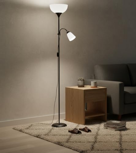 BEL AIR HOME – Lámpara de Pie Varese 1xE27 y 1xE14(BOMBILLAS NO INCLUIDAS) 178cm – Ideal para Salones y Estudios – Diseño Moderno y Funcional – Lampara de Lectura Orientable (NEGRO)