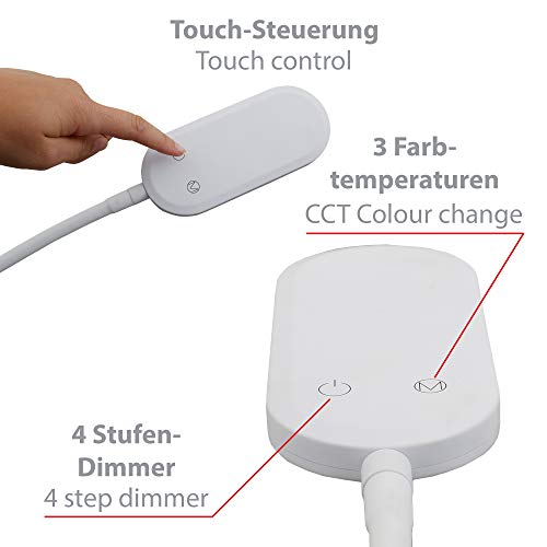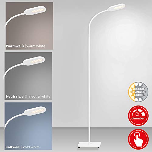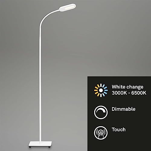 BRILONER – Lampara de Pie Regulable, Control de Temperatura de Color, 600 lúmenes, 8 W, Lámpara pie Salon, Lampara Pie LED, Lámpara de Pie Lectura, Flexo de Pie, Lámparas de Pie, 128 cm, Blanco