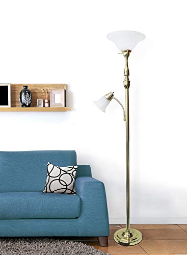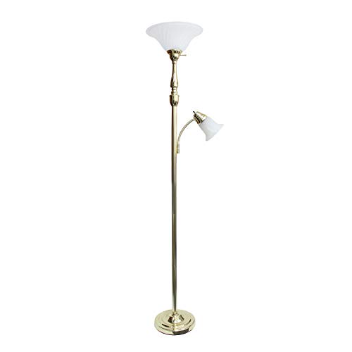 Elegant Designs LF2003-GLD 2 luz madre hija mármol blanco lámpara de pie, oro