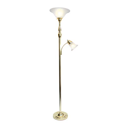 Ilumina tu dormitorio, oficina, vestíbulo o sala de estar con esta elegante pero asequible lámpara de pie de 2 luces madre e hija. Cuenta con un impresionante acabado dorado metálico y tonos de mármol blanco con vidrio cortado en espiral para completar el aspecto atemporal.