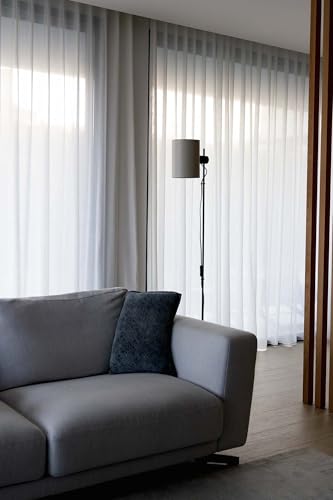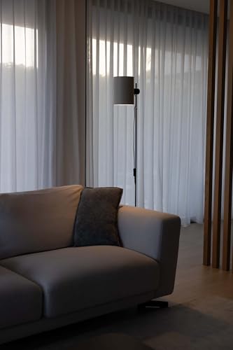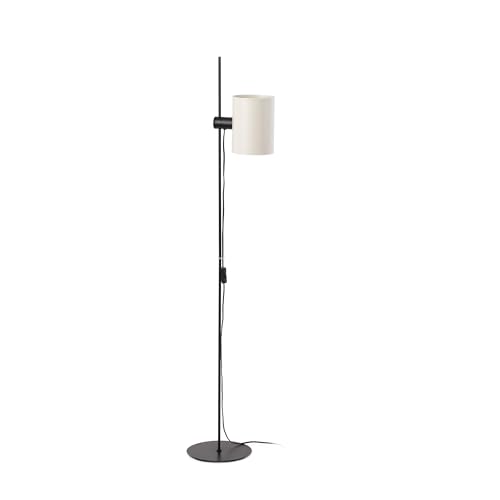 Lámpara de pie con pantalla cilíndrica de color beige diseñada de Faro Lab. Un diseño singular para dar un matiz contemporáneo a cualquier espacio. Es capaz de orientar la luz más fijamente. Estructura en negro.