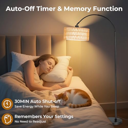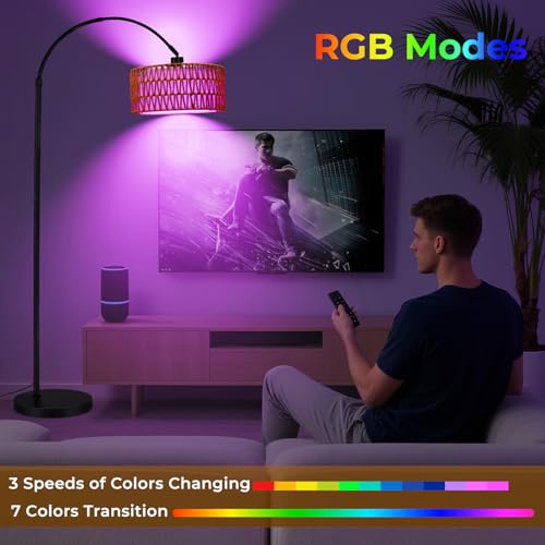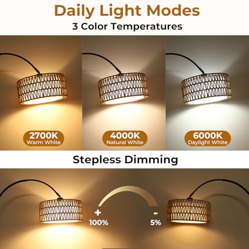 Pantalla Ajustable 3-en-1: Combina pantallas de tela y tejida para crear 3 estilos de iluminación. Gírala para cambiar entre iluminación focalizada para tareas, suave luz ambiental o iluminación general; todo con una moderna lámpara de pie de arco.