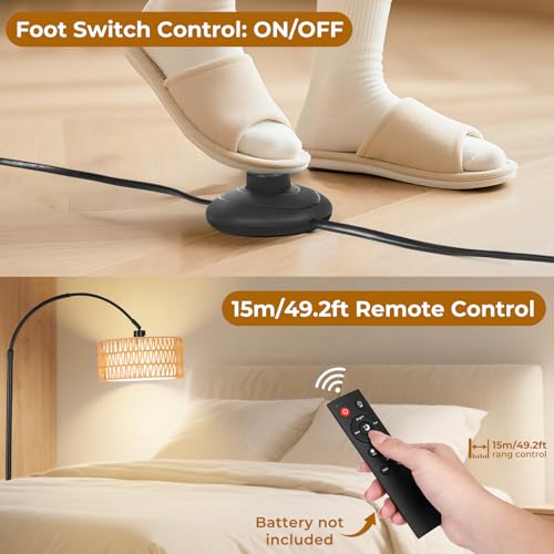 Lámpara de Pie LED Regulable – 9W 900LM Lampara de Pie Arco con Mando & Bombilla E27, Luz para Leer para Salón, Dormitorio, Oficina – Negro