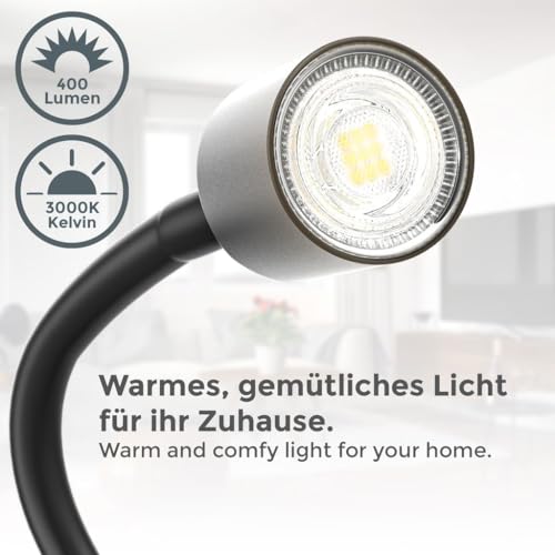 FUNCIONAMIENTO INTUITIVO – La bombilla LED GU10 de nuestra lámpara de mesa funciona con un interruptor de palanca. La lámpara de mesa LED brilla con 400 lúmenes y 3.000 Kelvin en un color de luz blanco cálido.