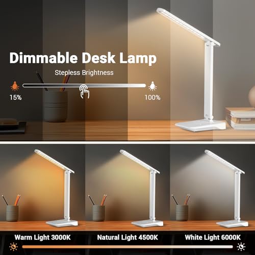 Diboniur Lampara Escritorio LED, Flexo Escritorio con 2400mAh Batería, 3 Temperaturas, Múltiples Niveles de Brillo, Plegable, Control Táctil, Blanco
