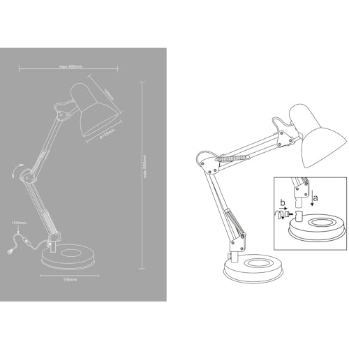 Lámpara de escritorio de fábrica de metal, color gris, bombilla E27 Max 40 W, excluida