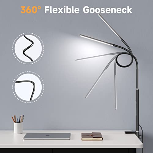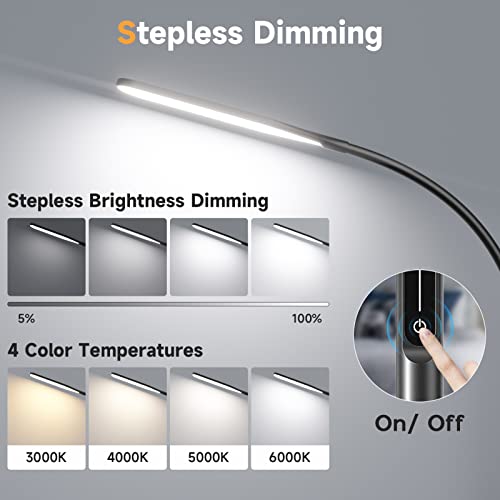 Lámpara de Escritorio LED con Pinza, Lámpara de Escritorio de Arquitecto de Regulación Continua con Brazo Giratorio, Mando a Distancia, 4 Temperaturas de Color, Luz de Trabajo