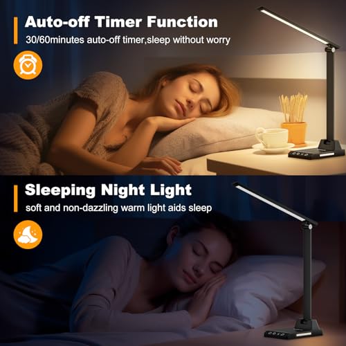 【Lámpara Multifuncional】La flexo escritorio adopta el control táctil, la función de memoria diseñada, el temporizador de apagado automático de 30/60 minutos y el modo de luz nocturna. La base de la lámpara de mesa regulable tiene un puerto de carga USB de salida, que es conveniente para cargar tu teléfono móvil, tableta, kindle y más