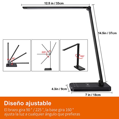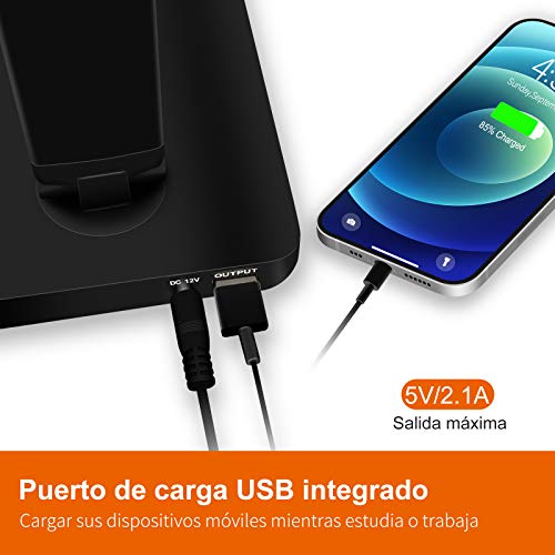 Lámpara de oficina equipada con un cómodo puerto de carga USB: Lámpara de escritorio equipada con puerto de carga USB. Recarga tus dispositivos a través de la salida USB de 5V/1A, mantiene tu teléfono, tableta, lectores kindle, y otros dispositivos electrónicos al alcance de la mano mientras se carga