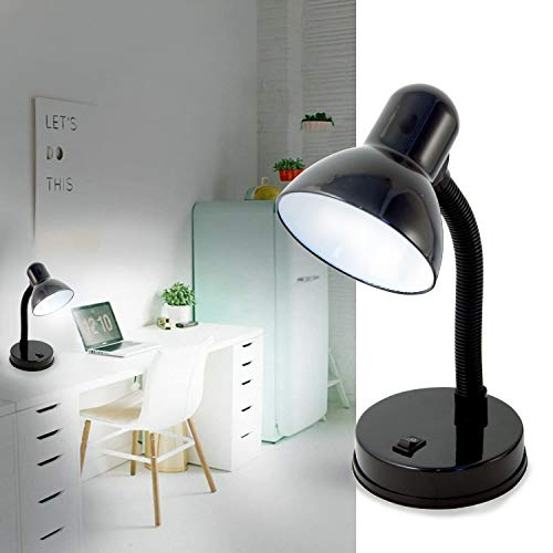 Velamp Charleston Lámpara, Base de Bombilla E27, Compatible con LED, Brazo Flexible, con Cable e Interruptor, para habitación de bebé, Escritorio, Estudio, 6 W, Negro