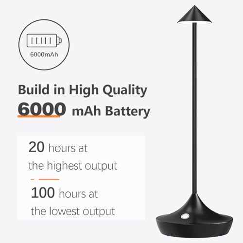 Hapfish Lampara de mesa LED recargable, 6000mAh Moderna lamparas escritorio inalambrica impermeable y portatil, lámpara bateria sin cables, para exterior, terraza, mesita noche, jardin, restaurante