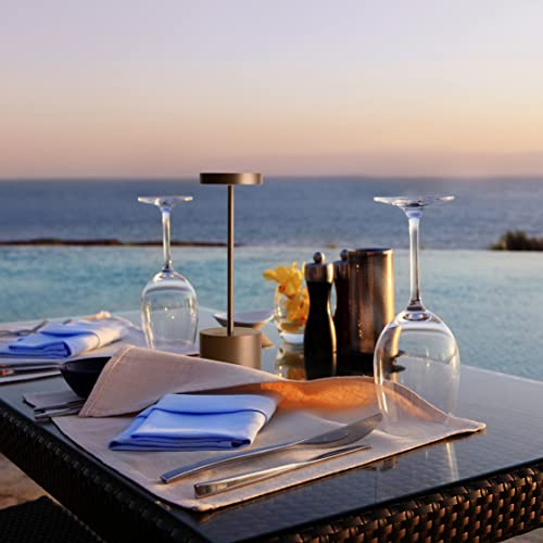 Lámpara de mesa inalámbrica, lámpara de mesa LED recargable de 5000mAh,regulable, lámpara de metal, para el comedor, el dormitorio, el exterior (Marrón)