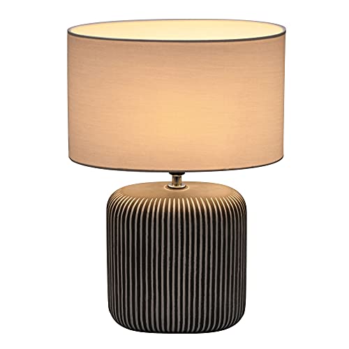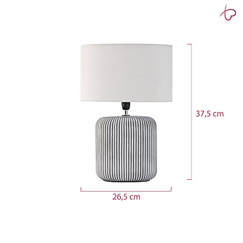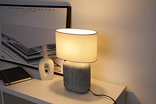 Pauleen 48218 Luminaria de sobremesa Pure Shine, máx. 20 W, hecha a mano, gris, blanco, lámpara para mesita de noche estilo boho, tela, cerámica, E14