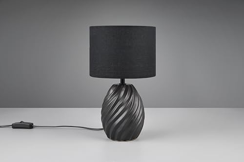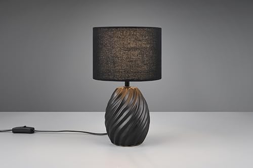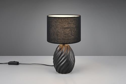 Reality Leuchten Lámpara de Mesa MELVA R51771032, Base Cerámica Negro Mate, Pantalla de Tela Negra, excl. 1x E14