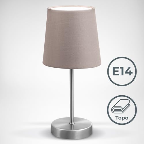B.K.Licht Lámpara de mesa LED, lámpara de tela color topo, níquel mate, E14, lámpara de mesa, lámpara de cama con interruptor, IP20.