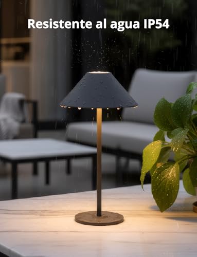 Bojim Lamparas de Mesita de Noche Mesa Sin Cable, Lámparas LED Recargable con USB Inalambrica, Lamps Luz Tactil Table de Bateria, Candeeiro para Exterior Portatil Interior, IP54, Metal, Gris