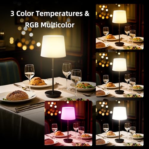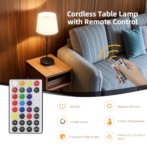 【Regulable y con múltiples modos de color】La lamparas de mesita de noche inalambricas ofrece: regulación continua de brillo (20%-100%), 3 temperaturas de color (blanco frío, cálido y neutro), 15 modos RGB y 4 efectos dinámicos, con memoria de configuración. Perfecta para cabeceira, salon, dormitorio, comedor o como luz de emergencia.