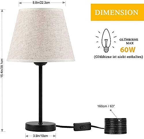 Tamaño ideal de la lámpara: altura de la lámpara de mesa: 39,1 cm, diámetro de la base: 10 cm, diámetro de la pantalla de lámpara: 22,3 cm, con un cable de alimentación enchufable de 170 cm. Esta pequeña lámpara tiene una almohadilla antideslizante en la parte inferior de la base que evita arañazos en los muebles y resbalones. Crear un ambiente más seguro para su familia y su casa.