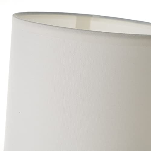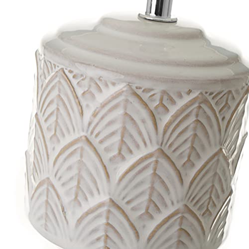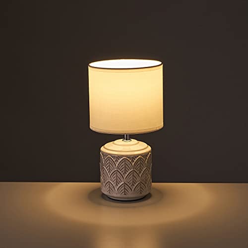 LOLAhome – Lámpara de mesa cilíndrica de 15x28cm | Lámpara para mesita de noche con hojas de cerámica blanca y beige y pantalla de lino (Beige) E14