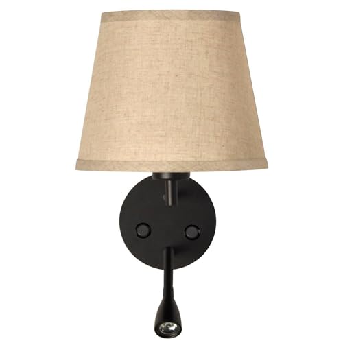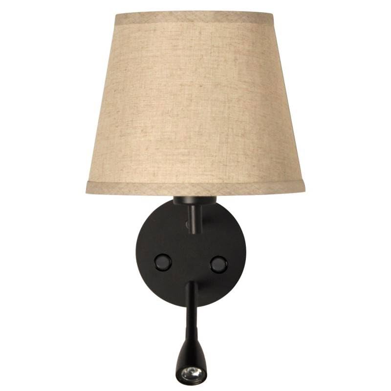 Versátil y elegante aplique de pared con doble función: Pantalla de tela para iluminación general y foco LED de lectura de 3W orientable. Ideal para cabecero de cama o para un rincón de lectura del hogar.