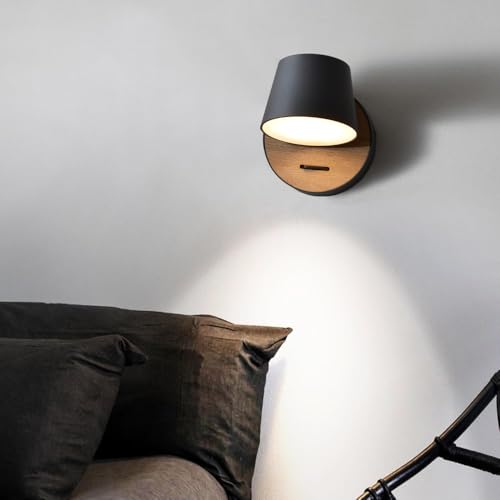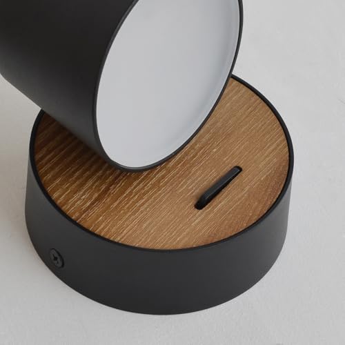 Lámpara de Pared con Interruptor Negro, 360°Rotatable Led Madera Diseño Industrial Lámpara de Pared,Retro Pared Lectura Lámpara Interior Acero, Diseño Dormitorio, Pasillo Salón