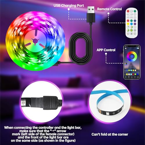 Especificaciones: Tira LED 3M para TV de 32″-45″, Tira LED TV Bluetooth – 16 Millones de Colores | Sincronización con Música y Juegos | Mando a Distancia 2.4G Sin Retraso | Luces Led Fácil Instalación (Adhesivo 3M)