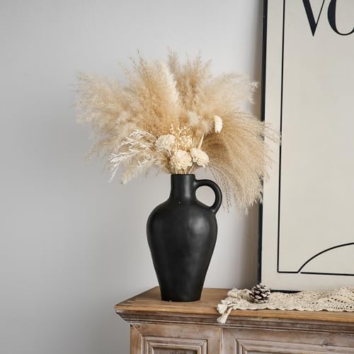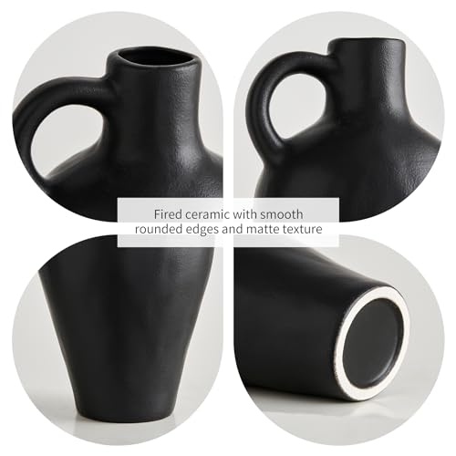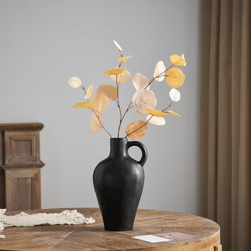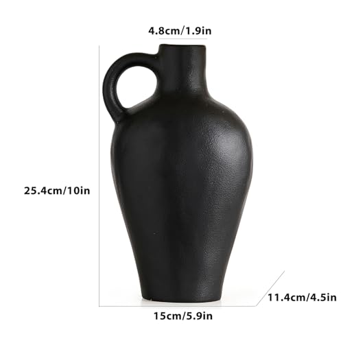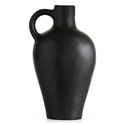 Jarrón de cerámica negro decoración rústica granja jarrones para decoración del hogar, jarrón moderno de flores, jarrón negro mate para estantería, tabla, pizarra estética, decoración (negro)