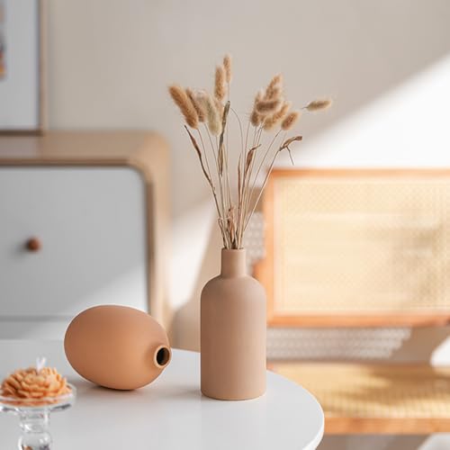 Juego de 3 Jarrones de Cerámica,Jarrones Deco Estética Neutra Boho Floreros Deco Escandinavos,decoración Moderna de la casa de Campo,para la Sala de Estar,el Estante (Castaño Claro Naranja Beige)
