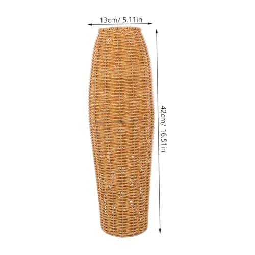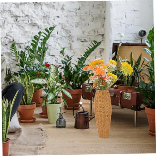 Diseño versátil y funcional: El jarrón alto y tejido con decorativos, ideal para sostener arreglos artificiales, flores secas o bambú de la suerte, aportando frescura y a cualquier estancia