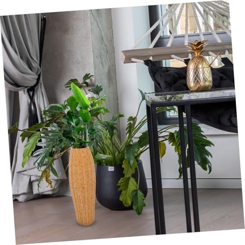Alipis Jarrón Decorativo De Pie Alto 2 Unidades, Material Plástico Resistente Imitación De Ratán, Diseño Sencillo Rústico, para Interior Sala De Estar y Dormitorio
