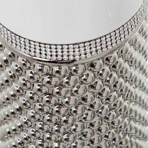 DRW Jarron de Suelo de Ceramica Blanco y Plateado con Brillantes 14x14x50cm