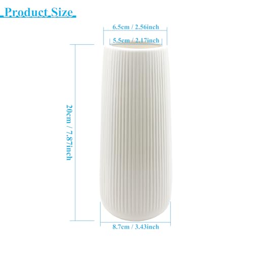 【Jarrón de cerámica blanca tamaño】Ca. 6.5CM(L) x 8.7CM(W) x 20CM(H). La decoración del jarrón es de unos 20CM de altura, diámetro de la abertura de unos 5,5cm y 8,7CM de diámetro en la base.