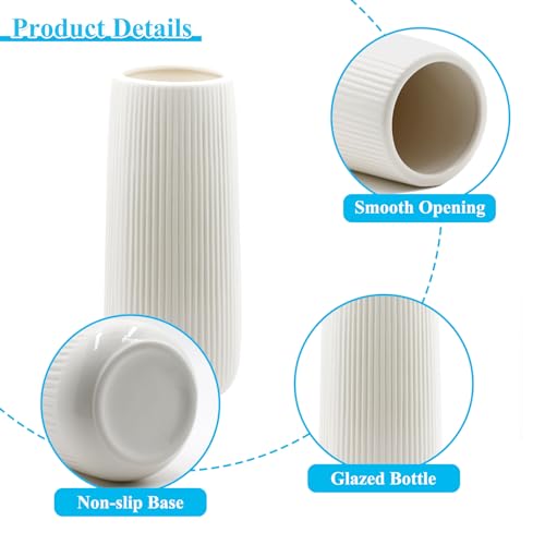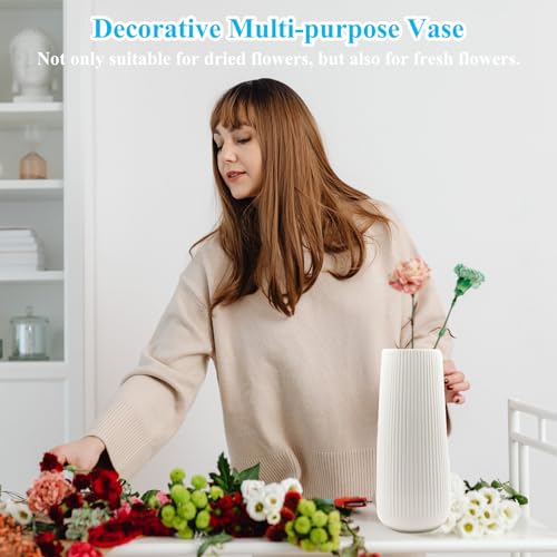 Jarrón de cerámica blanco para hierba de la Pampa – Altura: 7,87 pulgadas – Nervurado, moderno y bohemio para flores frescas y secas, decoración del hogar, sala de estar, mesa
