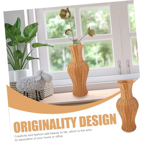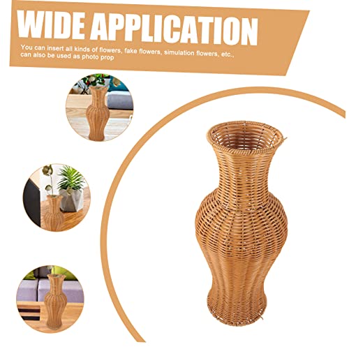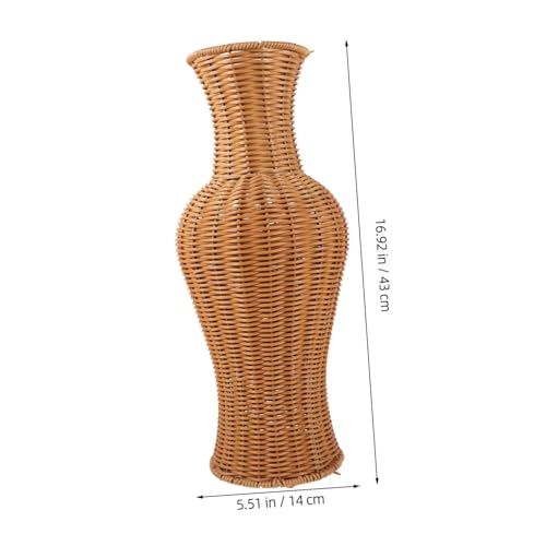 Jarrón de ratán falso alto: el color es fresco y elegante, simple y natural. agregue una sensación natural y relajada a la vida ocupada, el jarrón de ratán de imitación