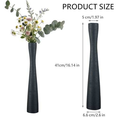 Calidad duradera:Este jarrón negro de 41 cm de alto está hecho de cerámica cepillada,con un cuerpo delgado que irradia una belleza sencilla y exquisita