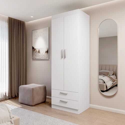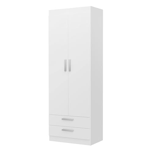 Buyqualia – Armario Ropero 2 Puerta – 2 Cajones, Blanco Snow
