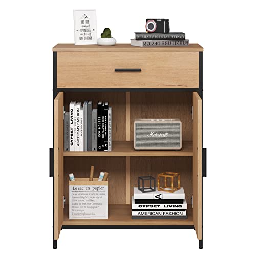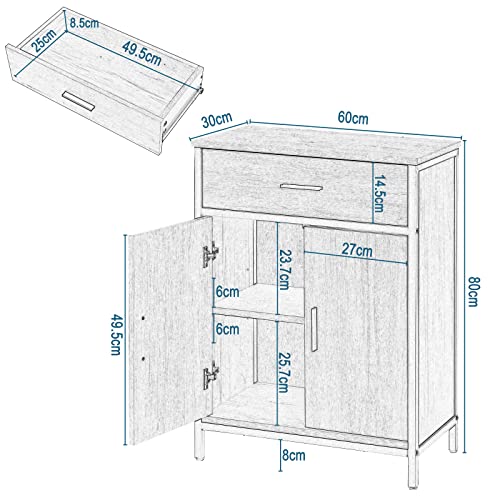 Mueble de Almacenaje Multifuncional: Con 1 cajón grande y 2 compartimentos detrás de las puertas, el armario de almacenaje es una solución ideal para cuarto de baño, pasillo, salón, cocina, etc.
