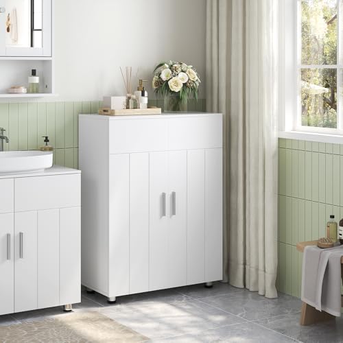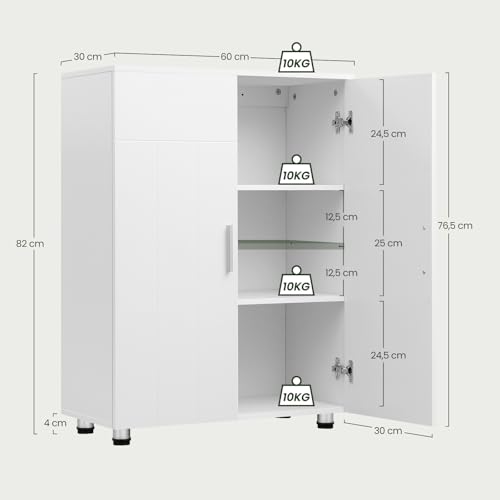 EUGAD Armario de Baño con 2 Puertas, Mueble Auxiliar con 2 Estantes, Armario Columna de Suelo para Cocina y Salón, Blanco, MDF, 60x30x82 cm