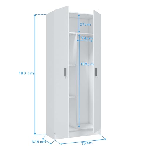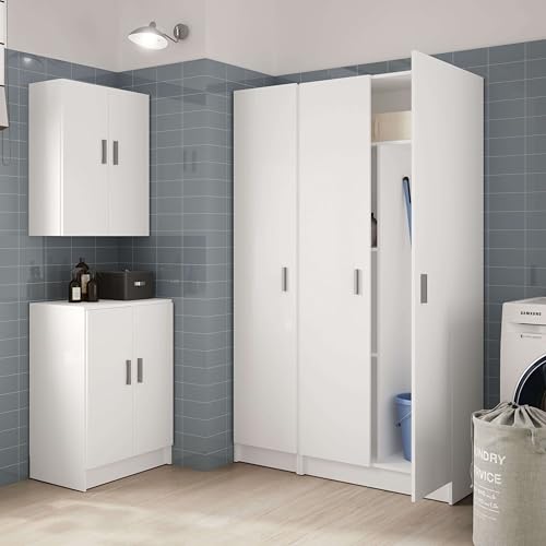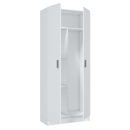 Habitdesign Armario Multiusos, Escobero 2 Puertas 3 Estantes, 180x73x37 (AltoxAnchoxFondo – en cm), Color Blanco Mate