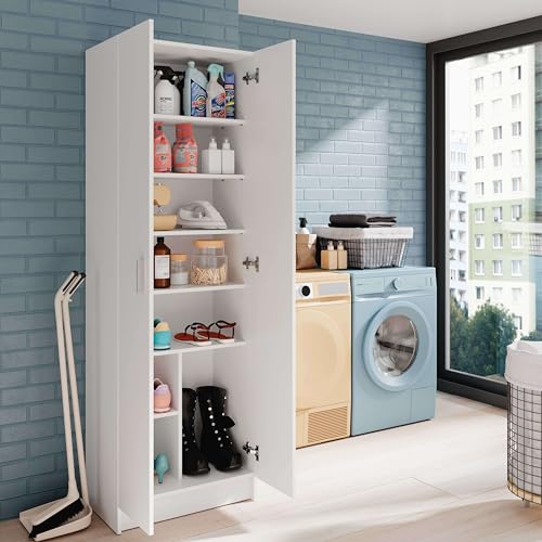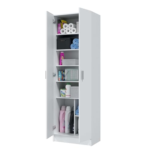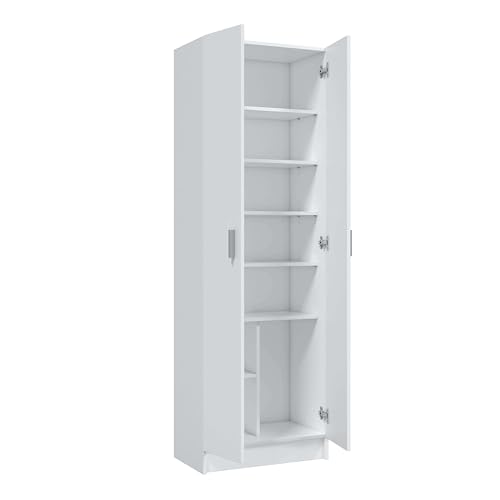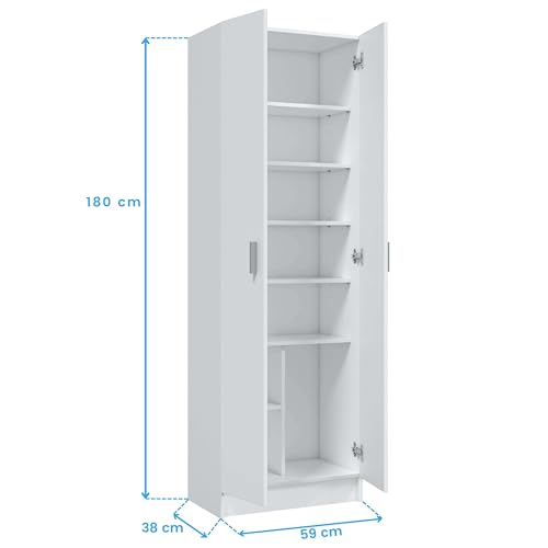 Habitdesign Armario Zapatero 2 Puertas 6 Estantes, 180x59x37 (AltoxAnchoxFondo – en cm), Armario Multiusos 2 Puertas 6 Estantes, Color Blanco Mate