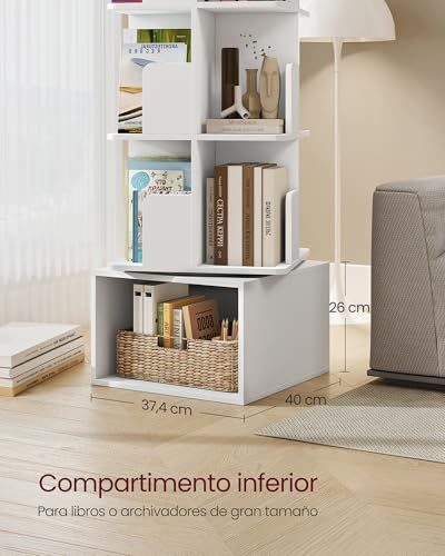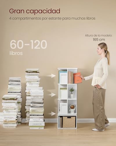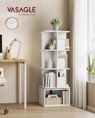 VASAGLE Custos Colección – Estantería Giratoria de 4 Niveles, Librería Rotatoria 360°, con Compartimentos Abiertos, 40 x 40 x 124,6 cm, para Dormitorio, Salón, Oficina, Blanco Nube LBC471WB01