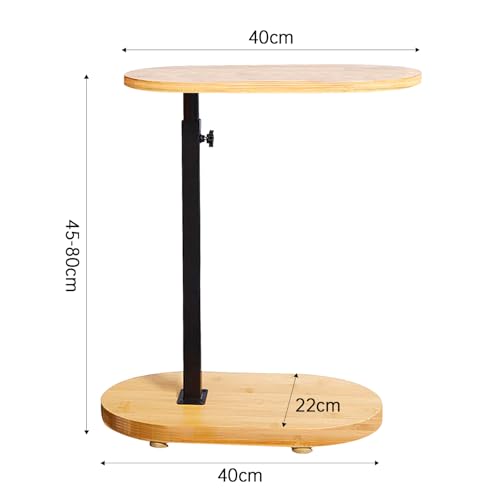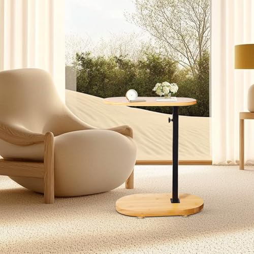 Mesa Auxiliar Forma C Bambú Metal Moderna Altura Ajustable, Side Table, Mesa Auxiliar de Cama, Mesa de Sofá, Mesilla de Noche, Mesa de Cuidado, para Salón Dormitorio Baño